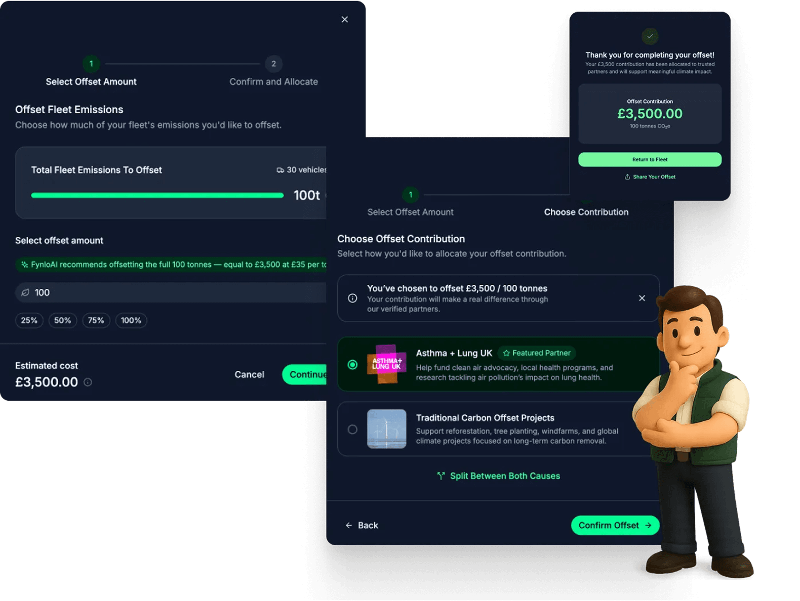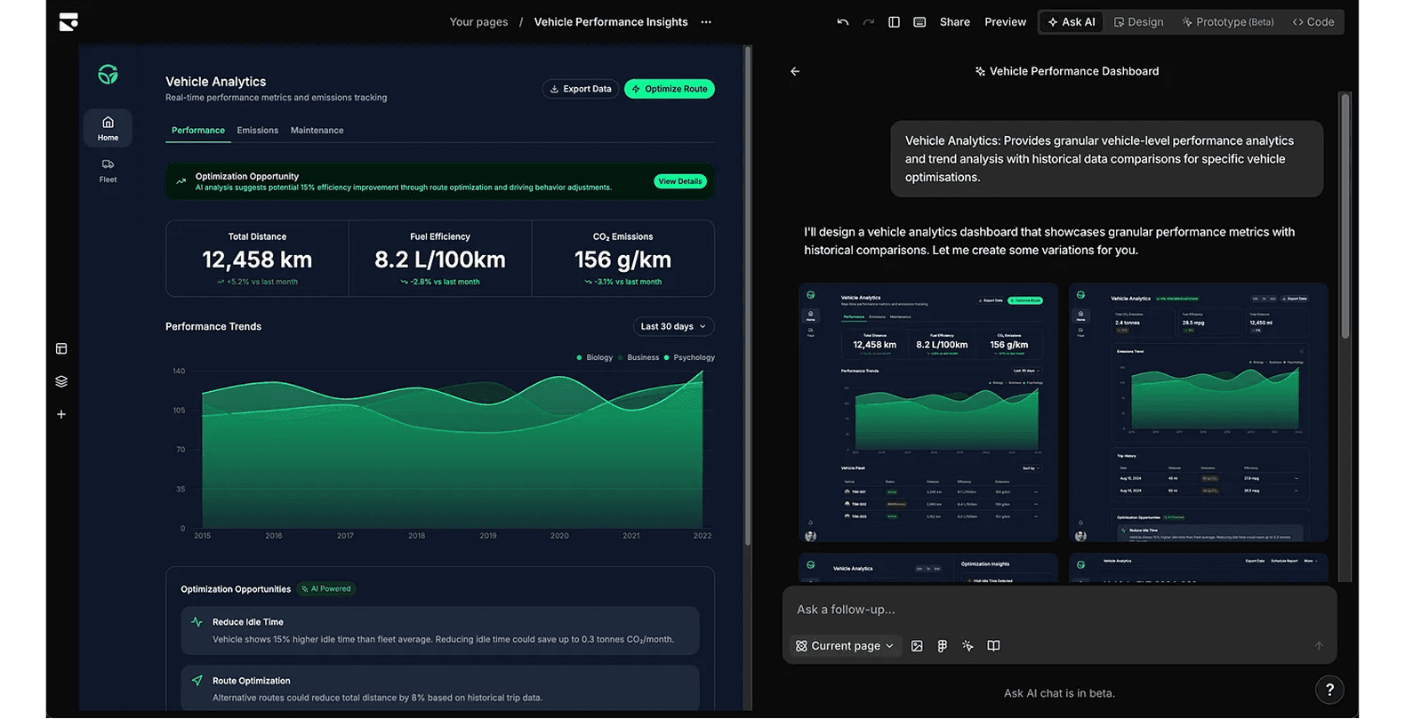 Fleet operators lacked accessible tools to measure and offset carbon emissions efficiently. The challenge was to validate whether an AI driven platform could simplify emissions tracking and make carbon offsetting actionable at scale.